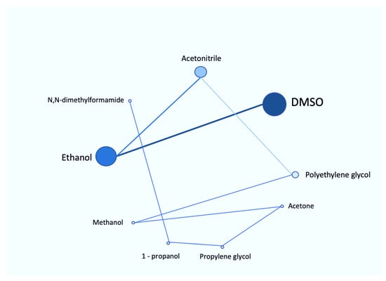 Eight organic solvents have been studied for their effects on CYP3A4 activity using pooled human microsomes [102]. The hydrophilic organic solvents used for this study were DMSO, acetonitrile, methanol, 1-propanol, ethanol, polyethylene glycol, propylene glycol and N,N-dimethylformamide. All organic solvents, except methanol, had significantly decreased testosterone 6β-hydroxylation activity, which reflected the inhibition of CYP3A4. In contrast, only DMSO and polyethylene glycol showed potential inhibitory effect on midazolam 1′-hydroxylation activity. Similar to this study, DMSO showed strongest inhibition for both metabolic activities. Moreover, the inhibition of testosterone 6β-hydroxylation activity by DMSO was in a concentration-dependent manner: from 10% to 50% inhibition at from 0.1% to 1% v/v concentration. The summary of all the reported organic solvents is shown in Figure 3.
