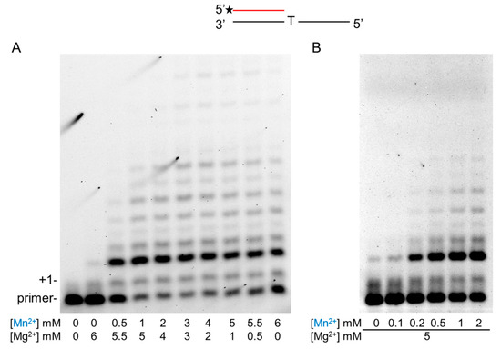 2.2. Mg2+ and Mn2+ Concentration-Dependent Synthesis by Polη