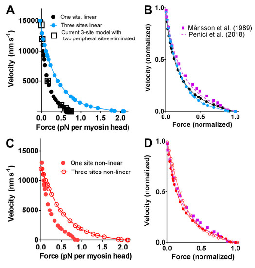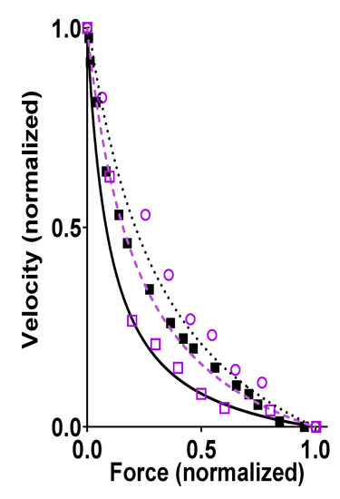 - Cheng, Y.-S.; Leite, F.D.S.; Rassier, D.E. The load dependence and the force-velocity relation in intact myosin filaments from skeletal and smooth muscles. Am. J. Physiol. Physiol. 2020, 318, C103–C110. [Google Scholar] [CrossRef] [PubMed]