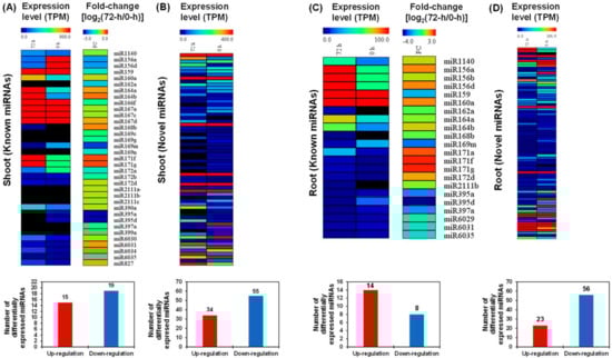 - Jian, H.; Yang, B.; Zhang, A.; Ma, J.; Ding, Y.; Chen, Z.; Li, J.; Xu, X.; Liu, L. Genome-Wide Identification of MicroRNAs in Response to Cadmium Stress in Oilseed Rape (Brassica napus L.) Using High-Throughput Sequencing. Int. J. Mol. Sci. 2018, 19, 1431. [Google Scholar] [CrossRef] [PubMed]