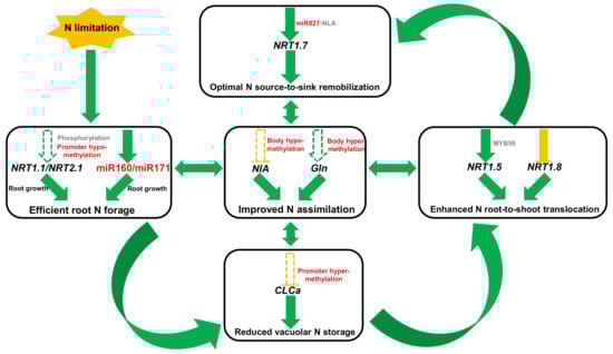 Hua, Y.-p.; Zhou, T.; Huang, J.-y.; Yue, C.-p.; Song, H.-x.; Guan, C.-y.; Zhang, Z.-h. Genome-Wide Differential DNA Methylation and miRNA Expression Profiling Reveals Epigenetic Regulatory Mechanisms Underlying Nitrogen-Limitation-Triggered Adaptation and Use Efficiency Enhancement in Allotetraploid Rapeseed. Int. J. Mol. Sci. 2020, 21, 8453. https://doi.org/10.3390/ijms21228453