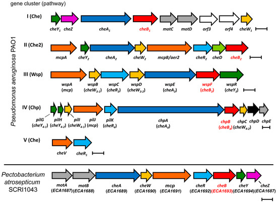 P. aeruginosa PAO1 has five gene clusters encoding signaling proteins that assemble into four chemosensory pathways (Figure 1) [33].