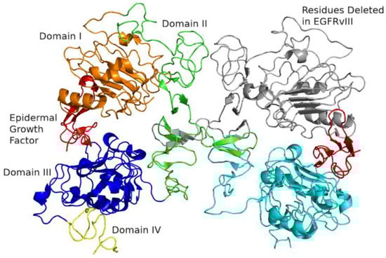 - Humphrey, P.A.; Wong, A.J.; Vogelstein, B.; Zalutsky, M.R.; Fuller, G.N.; Archer, G.E.; Friedman, H.S.; Kwatra, M.M.; Bigner, S.H.; Bigner, D.D. Anti-synthetic peptide antibody reacting at the fusion junction of deletion-mutant epidermal growth factor receptors in human glioblastoma. Proc. Natl. Acad. Sci. USA 1990, 87, 4207–4211. [Google Scholar] [CrossRef]