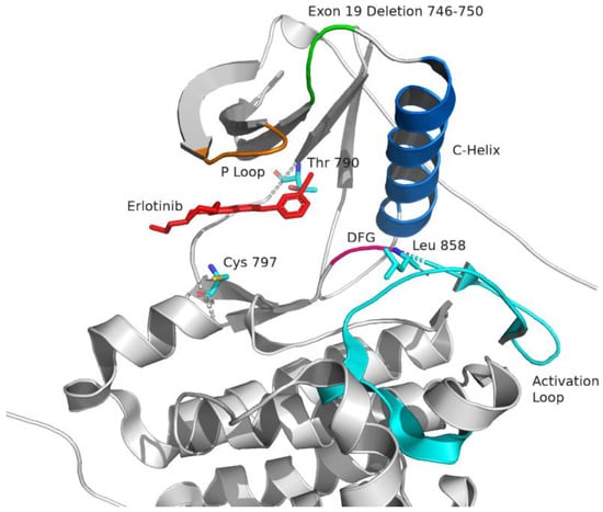 - Stamos, J.; Sliwkowski, M.X.; Eigenbrot, C. Structure of the epidermal growth factor receptor kinase domain alone and in complex with a 4-Anilinoquinazoline Inhibitor. J. Biol. Chem. 2002, 277, 46265–46272. [Google Scholar] [CrossRef]