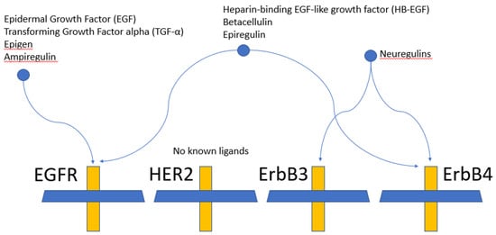 - Burgess, A.W. EGFR family: Structure physiology signalling and therapeutic targets. Growth Factors 2008, 26, 263–274. [Google Scholar] [CrossRef] [PubMed]