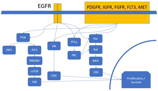 - Quesnelle, K.M.; Boehm, A.L.; Grandis, J.R. STAT-mediated EGFR signaling in cancer. J. Cell. Biochem. 2007, 102, 311–319. [Google Scholar] [CrossRef] [PubMed]