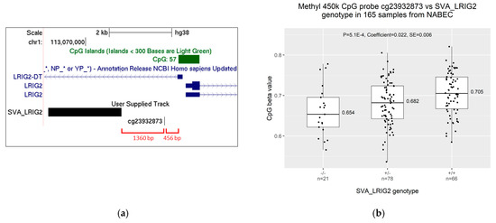 2.3. Increased Allele Dosage of SVA_LRIG2 Is Associated with Increased Methylation of the Nearest 450K Methylation Probe, cg23932873
