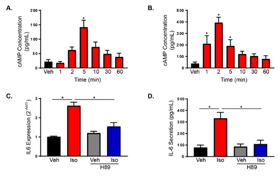 - Chen, C.; Du, J.; Feng, W.; Song, Y.; Lu, Z.; Xu, M.; Li, Z.; Zhang, Y. beta-Adrenergic receptors stimulate interleukin-6 production through Epac-dependent activation of PKCdelta/p38 MAPK signalling in neonatal mouse cardiac fibroblasts. Br. J. Pharmacol. 2012, 166, 676–688. [Google Scholar] [CrossRef]