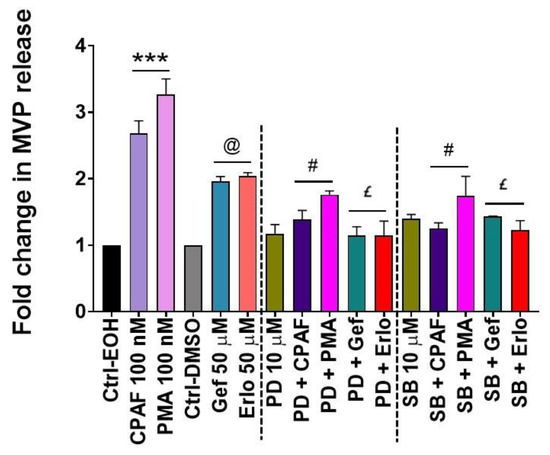 2.6. MAPK Pathway Mediates Erlotinib and Gefitinib-Mediated MVP Release