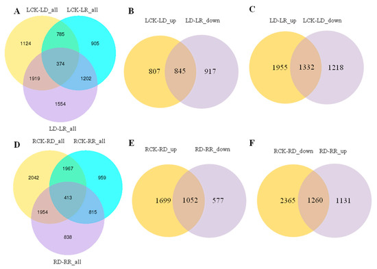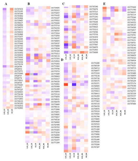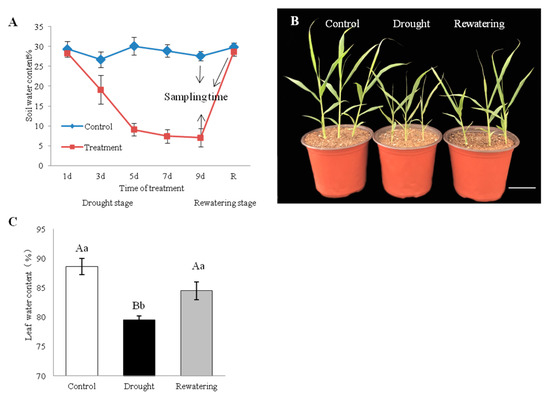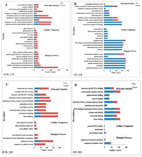 2.5. Some of DEGs after Re-Watering Different in Roots and Leaves