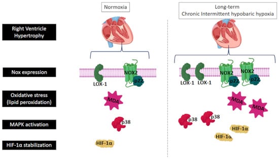 Pena, E.; Siques, P.; Brito, J.; Arribas, S.M.; Böger, R.; Hannemann, J.; León-Velarde, F.; González, M.C.; López, M.R.; López de Pablo, Á.L. Nox2 Upregulation and p38α MAPK Activation in Right Ventricular Hypertrophy of Rats Exposed to Long-Term Chronic Intermittent Hypobaric Hypoxia. Int. J. Mol. Sci. 2020, 21, 8576. https://doi.org/10.3390/ijms21228576
