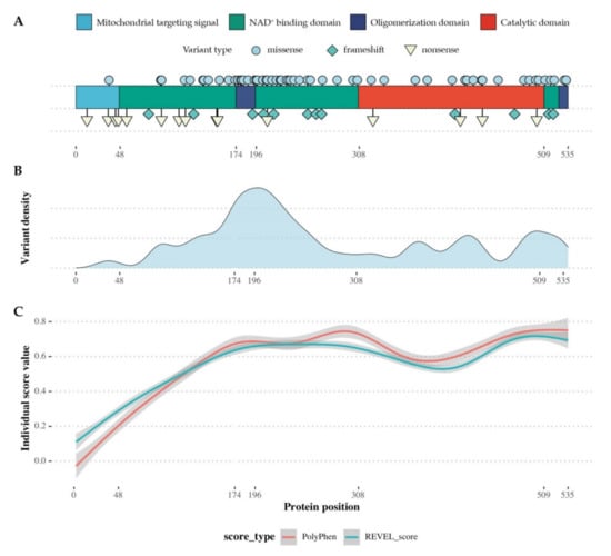 | 59 | c.1529C > T | p.Ser510Phe | NAD+ binding domain | 0 | 1 | 0.908 | [32] |