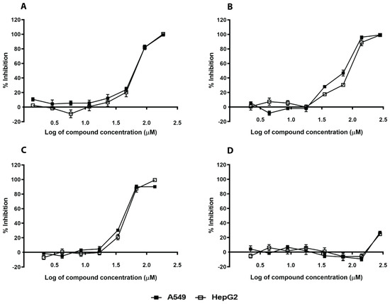 2.3. In Silico Hits Affect S. aureus Growth and Have Moderate Mammalian Toxicity