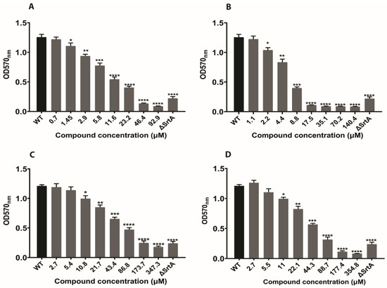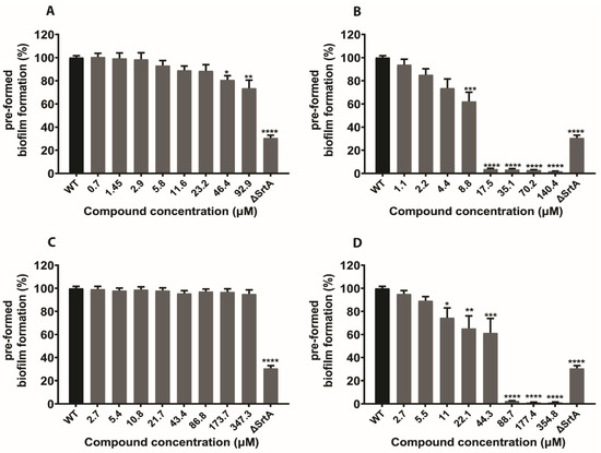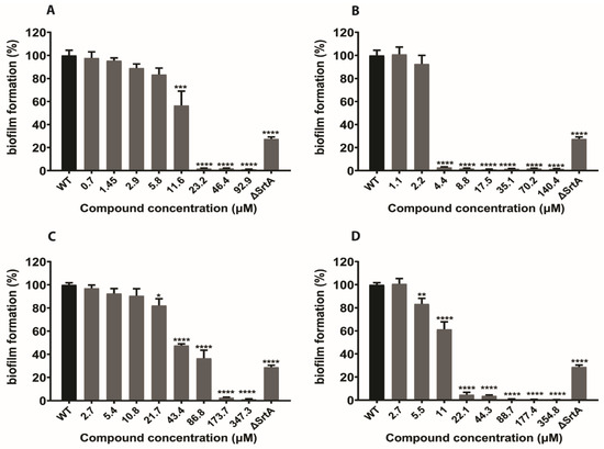 2.4. In Silico Hits Reduce Biofilm Formation