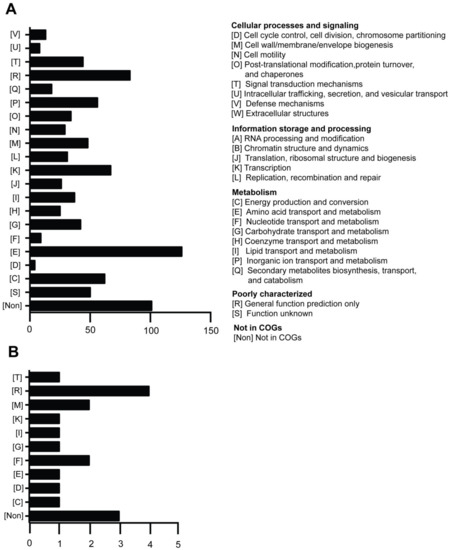 - Tatusov, R.L.; Galperin, M.Y.; Natale, D.A.; Koonin, E.V. The COG database: A tool for genome-scale analysis of protein functions and evolution. Nucleic Acids Res. 2000, 28, 33–36. [Google Scholar] [CrossRef] [PubMed]