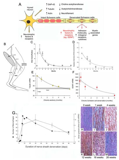 95. Hoke, A.; Redett, R.; Hameed, H.; Jari, R.; Zhou, C.; Li, Z.B.; Griffin, J.W.; Brushart, T.M. Schwann cells express motor and sensory phenotypes that regulate axon regeneration. J. Neurosci. 2006, 26, 9646–9655. [Google Scholar] [CrossRef]
