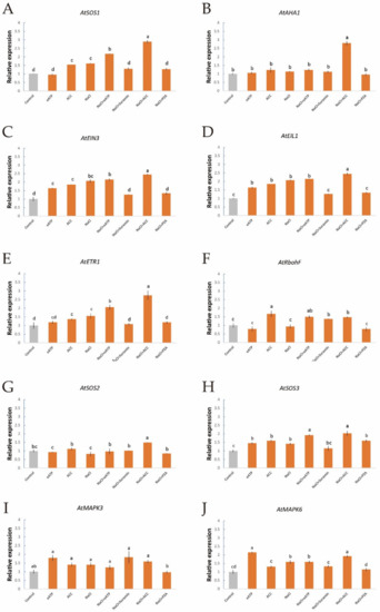 - Chung, J.S.; Zhu, J.K.; Bressan, R.A.; Hasegawa, P.M.; Shi, H.Z. Reactive oxygen species mediate Na+-induced SOS1 mRNA stability in Arabidopsis. Plant J. 2008, 53, 554–565. [Google Scholar] [CrossRef]