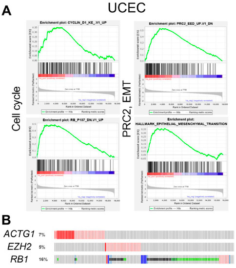 2.4. ACTG1 Gains in UCEC are Associated with Cell Cycle, PRC2 Activity, and Epithelial to Mesenchymal Transition