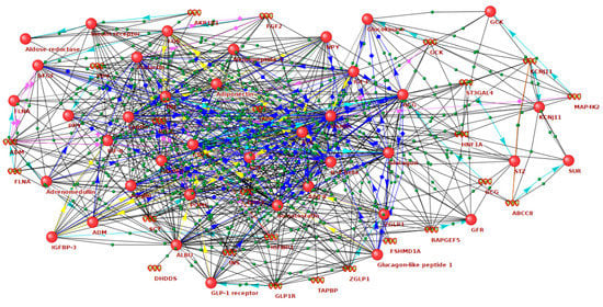 A network of the interactions of genes and proteins associated with both hyperglycemia and hypoglycemia (glucose variability (GV))-related genes), reconstructed by the ANDSystem.