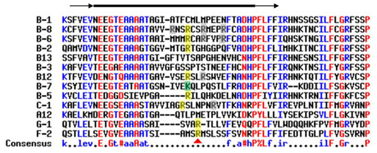The modulation of proteolytic sensitivity by deimination has been notified for other deiminated proteins, including MBP, which is better proteolyzed by cathepsin D after deimination [106]. The deiminated form of fibrin is also less efficiently cleaved by thrombin. This may participate in pro-inflammatory processes in rheumatoid arthritis [107,108]. An atypical organization of the fibrin network in patients with rheumatoid arthritis has recently been characterized by a scanning electron microscopy approach, using fibrin isolated from blood plasma [109]. In this study, the amount of deiminated fibrin was significantly higher in patients than in healthy controls, but this observation was not disease-specific, as already published [79]. Deimination could also regulate the proteolysis of some cytokines [110]. In the case of interleukin-8, the deimination of an arginine at the N-terminal end (Arg-5) decreases its proteolysis by thrombin and plasmin, reduces its binding to glycosaminoglycans (heparin and heparan sulfate) and shows a lower chemotactic activity against poly-nuclear neutrophils [110]. The effect of deimination on proteolysis could also occur for some serpins, key inhibitors of many serine or cysteine peptidases. Serpins carry a variable reactive center loop (RCL) able to specifically interact with the active site of the cognate peptidases [111]. Paul Thompson’s team demonstrated the inhibition of the activity of several deiminated serpins (such as antithrombin and antiplasmin). In particular, the deiminated serpin F2 (antiplasmin a2; Arg376Cit) no longer acted on plasmin, unlike the mutated form Arg376Lys, which remained active. Unlike positively charged arginine (or lysine), citrulline would not be able to interact in the active site of the peptidase [112]. A multiple alignment of 13 human serpin sequences demonstrates this could potentially concern many serpins (at least B2, B5, B6, B8, B12, C1, G1 and F2). Those members of the subgroup of serpins carry an arginine at the P1 position in their reactive center loop (Figure 3). Serpins play a major role in many processes related to inflammation, coagulation, complement and epidermal differentiation (desquamation and extracellular matrix). Such a mechanism of regulating proteolysis via the deimination of the peptidase inhibitors or peptidase substrates involved therefore seems particularly interesting and should be better deciphered in the future in physiological and pathological contexts.