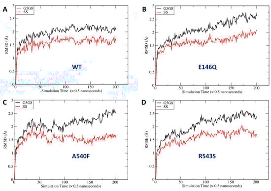 2.4. Missense Mutations Cause Conformational Changes at the ATP-Binding Site