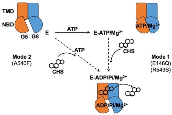 - Johnson, B.J.H.; Lee, J.Y.; Pickert, A.; Urbatsch, I.L. Bile acids stimulate atp hydrolysis in the purified cholesterol transporter ABCG5/G8. Biochemistry 2010, 49, 3403–3411. [Google Scholar] [CrossRef] [PubMed]