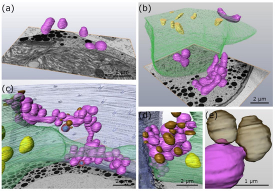 - Wanner, G.; Schäfer, T.; Lütz-Meindl, U. 3-D Analysis of Dictyosomes and Multivesicular Bodies in the Green Alga Micrasterias Denticulata by FIB/SEM tomography. J. Struct. Biol. 2013, 184, 203–211. [Google Scholar] [CrossRef][Green Version]