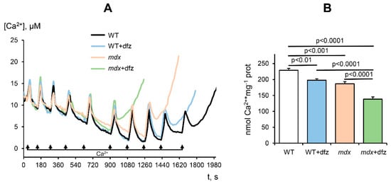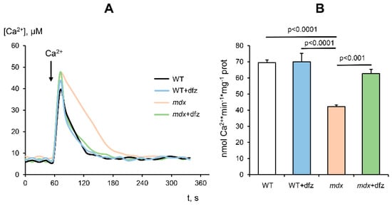 2.2. Effect of Deflazacort Administration on Ca2+ Uniport in the Skeletal-Muscle Mitochondria of Dystrophin-Deficient and WT Mice