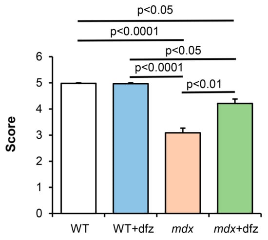 2.4. Deflazacort Improves the Muscle Function of Dystrophin-Deficient Mice