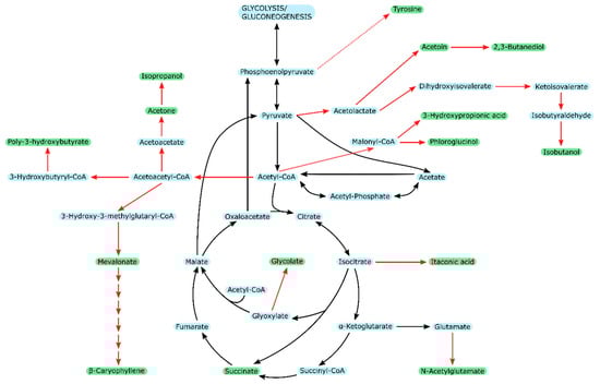 Most organisms listed in Table 6 were subject to little or no extensive genetic manipulation and generally constitute natural producers of these particular products. Genetic engineering was only required in some cases, where auxotrophic mutants were created, acetate uptake had to be enabled or product pathways were introduced [,,].