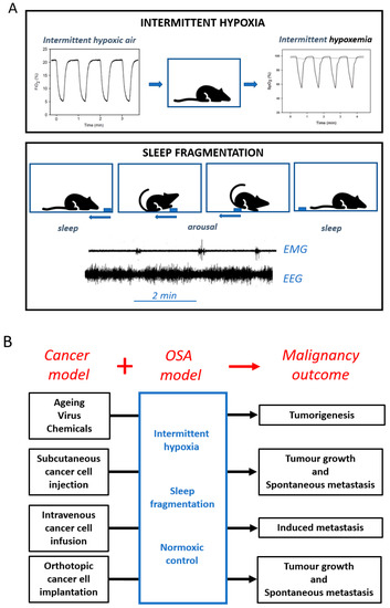 - Almendros, I.; Montserrat-Capdevila, J.; Ruz, J.R.; Torres, M.; Durán-Cantolla, J.; Navajas, D.; Farré, R. Intermittent hypoxia enhances cancer progression in a mouse model of sleep apnoea. Eur. Respir. J. 2011, 39, 215–217. [Google Scholar] [CrossRef] [PubMed]