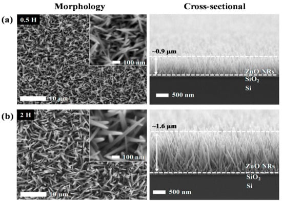 - Wu, D.; Wang, X.; Cao, K.; An, Y.; Song, X.; Liu, N.; Xu, F.; Gao, Z.; Jiang, K. ZnO nanorods with tunable aspect ratios deriving from oriented-attachment for enhanced performance in quantum-dot sensitized solar cells. Electrochim Acta 2017, 231, 1–12. [Google Scholar] [CrossRef]