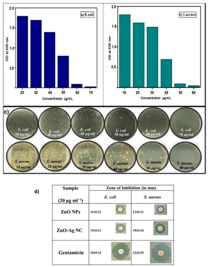 - Ansari, M.A.; Khan, H.M.; Khan, A.A.; Sultan, A.; Azam, A. Synthesis and characterization of the antibacterial potential of ZnO nanoparticles against extended-spectrum β-lactamases-producing Escherichia coli and Klebsiella pneumoniae isolated from a tertiary care hospital of North India. Appl. Microbiol. Biotechnol. 2012, 94, 467–477. [Google Scholar] [CrossRef]