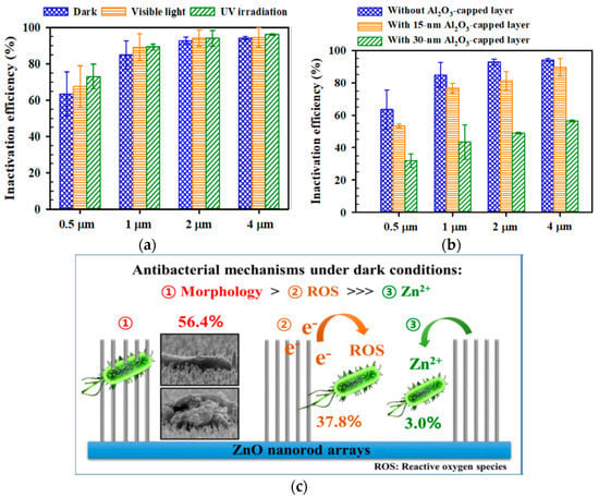 - Joe, A.; Park, S.H.; Shim, K.D.; Kim, D.J.; Jhee, K.H.; Lee, H.W.; Heo, C.H.; Kim, H.M.; Jang, E.S. Antibacterial mechanism of ZnO nanoparticles under dark conditions. J. Ind. Eng. Chem. 2017, 45, 430–439. [Google Scholar] [CrossRef]