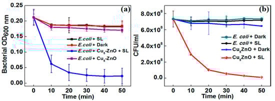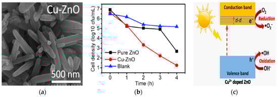 - Abinaya, C.; Marikkannan, M.; Manikandan, M.; Mayandi, J.; Suresh, P.; Shanmugaiah, V.; Ekstrum, C.; Pearce, J.M. Structural and optical characterization and efficacy of hydrothermal synthesized Cu and Ag doped zinc oxide nanoplate bactericides. Mater. Chem. Phys. 2016, 184, 172–182. [Google Scholar] [CrossRef]