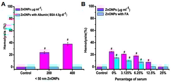 - Babu, E.P.; Subastri, A.; Suyavaran, A.; Premkumar, K.; Sujatha, V.; Aristatile, B.; Alshammari, G.M.; Dharuman, V.; Thirunavukkarasu, C. Size dependent uptake and hemolytic effect of zinc oxide nanoparticles on erythrocytes and biomedical potential of ZnO-ferulic acid conjugates. Sci. Rep. 2017, 7, 4203. [Google Scholar] [CrossRef]