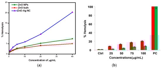 - Mahalakshmi, S.; Hema, N.; Vijaya, P.P. In vitro biocompatibility and antimicrobial activities of zinc oxide nanoparticles (ZnO NPs) prepared by chemical and green synthetic route—A comparative study. Bionanoscience 2020, 10, 112–121. [Google Scholar] [CrossRef]
