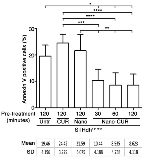 3.3.5. Treatment with CUR-Loaded Nanoparticles and Analysis of Apoptosis