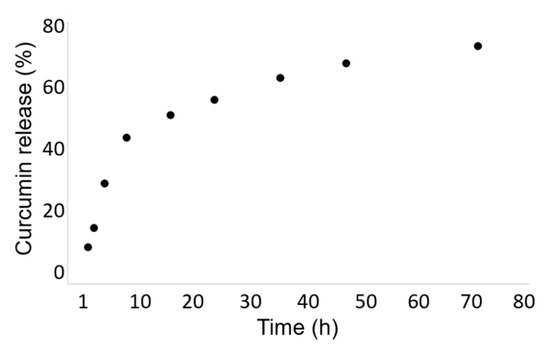 3.3.1. In Vitro Curcumin Release Study and Their Dimension Investigation