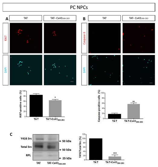 2.1. Effects of TAT-Cx43266–283 in NPCs in Proliferation Conditions