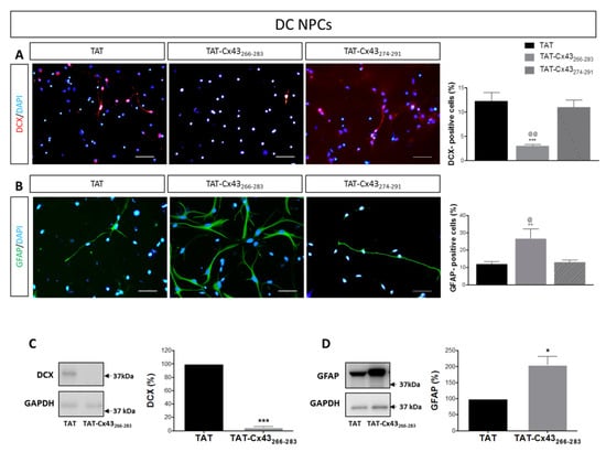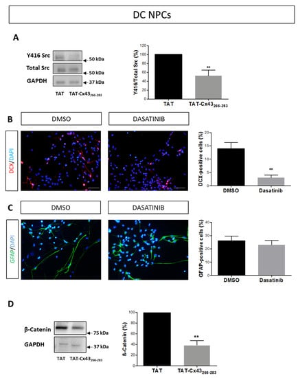 2.2. Effects of TAT-Cx43266–283 in NPCs in Differentiation Conditions
