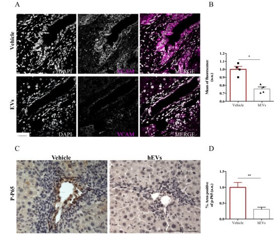 2.4. EVs Reduce Liver Expression of VCAM1 in the FVB.Mdr2−/− Mice