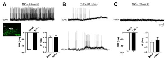 2.6. TNF-α Causes Mild Effects on the Activity of POMC Neurons