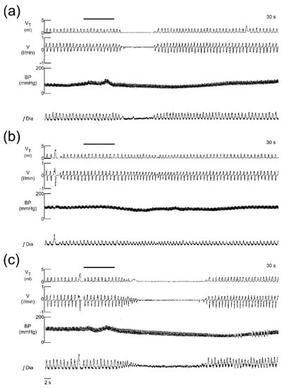 - Fu, C.; Shi, L.; Wei, Z.; Yu, H.; Hao, Y.; Tian, Y.; Liu, Y.; Zhang, Y.; Zhang, X.; Yuan, F.; et al. Activation of Phox2b-Expressing neurons in the nucleus tractus solitarii drives breathing in mice. J. Neurosci. 2019, 39, 2837–2846. [Google Scholar] [CrossRef] [PubMed]