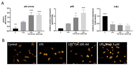 2.3. TSA and SAHA Enhance LPS-Induced NF-κB Activation