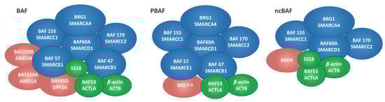 - Mashtalir, N.; D’Avino, A.R.; Michel, B.C.; Luo, J.; Pan, J.; Otto, J.E.; Zullow, H.J.; McKenzie, Z.M.; Kubiak, R.L.; St Pierre, R.; et al. Modular Organization and Assembly of SWI/SNF Family Chromatin Remodeling Complexes. Cell 2018, 175, 1272–1288.e20. [Google Scholar] [CrossRef]