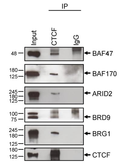 2.1. Immunoprecipitation and Identification of CCCTC-Binding Factor (CTCF)-Interacting Members of the Switch/Sucrose Nonfermentable (SWI/SNF) Complex
