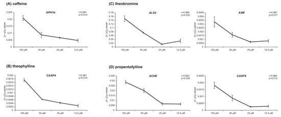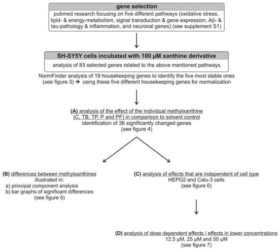 APA StyleJanitschke, D., Lauer, A. A., Bachmann, C. M., Seyfried, M., Grimm, H. S., Hartmann, T., & Grimm, M. O. W. (2020). Unique Role of Caffeine Compared to Other Methylxanthines (Theobromine, Theophylline, Pentoxifylline, Propentofylline) in Regulation of AD Relevant Genes in Neuroblastoma SH-SY5Y Wild Type Cells. International Journal of Molecular Sciences, 21(23), 9015. https://doi.org/10.3390/ijms21239015