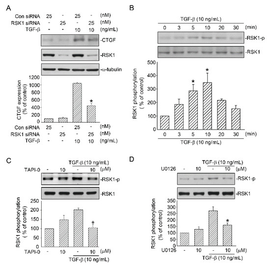 2.4. RSK1-Mediated TGF-β-Induced CTGF Expression