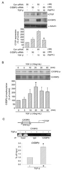 2.5. Role of C/EBPβ in TGF-β-Induced CTGF